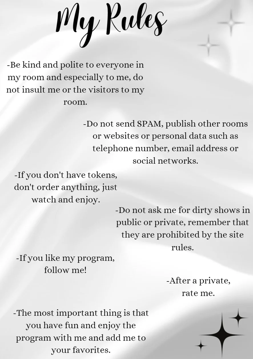 Еротичні танці, Приниження, Тверкінг, Секс-іграшки, Фут-фетиш, Стриптиз, Мастурбація пальцями, Спанкінг, Дилдо або вібратор, Брудні розмови, Глибоке горло, Мастурбація, Між грудьми, Олійне шоу, Кремпай, Оргазм, Жорсткий секс, Сквірт